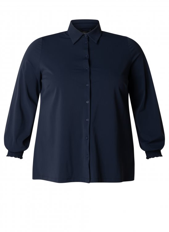 Een sterke basis, deze blouse. De gladde travelkwaliteit beweegt met je mee en blijft mooi in vorm, zonder strijken. De gesmockte mouwen zorgen voor een subtiele twist en maken het silhouet net wat losser. Combineer klassiek met een broek of rok, of draag haar nonchalant open over een top.