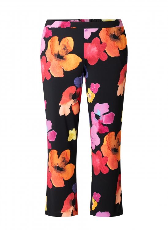 Deze black/multi brengt kleur en comfort samen. De broek van zachte jersey met rechte pijpen zit heerlijk en valt soepel.