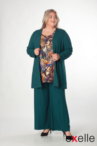 Perfect vest om te combineren met onze A-lijn shirts en tunieken. Het voorpand en de halslijn is met een mooi breed beleg afgewerkt. Ongecompliceerd exelle vest in een hoogwaardige tricot van viscose/elastaan. Het model is ruim bij de zoom, heeft een prachtige hals en lange mouwen.