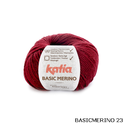 Katia Basic Merino. Breiwol en/of haakwol. Materiaal: 52% wol en 48% acryl. 1 bol = 50 g = 120 m. Voor deze wol gebruikt u breinaalden 3,5 – 4 mm. Stekenverhouding: 22 st x 29 toeren = 10 x 10 cm met nld. 3,5 mm.