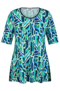 KjBRAND Shirt in A-lijn met modieuze, grafische allover-print * Basisshirt met ronde hals * in A-lijn, ausgestellter-vorm * grafische all-over-print * Halbarm Dieses Basic-shirt van KjBRAND in lichte ausgestellter-vorm is een klassieke begleiter voor alle gelegenheidsheiten. De Viscose-Stretch-Qualität hoed een feinen Glanz en tollen Fall. De moderne, grafische Allover-Print is een absolute topper.