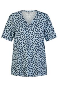 Basic T-shirt met V-hals * Flatterende V-hals * Kleine zijsplitten voor meer bewegingsvrijheid * Comfortabele ECOVERO™ viscose stretchstof * Licht A-lijn silhouet * Modieuze stippenprint over de hele stof. Dit KjBRAND shirt is een echte klassieker. De V-hals verlengt en flatteert elk figuur. De kleine zijsplitten zorgen voor optimale bewegingsvrijheid. De viscose stretchstof voelt comfortabel aan op de huid.