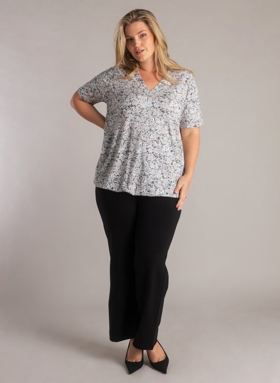 Dit T-shirt is gemaakt van een zachte Ecovero-viscosemix met elastane, waardoor het comfortabel en soepel draagt. De regular fit en V-hals zorgen voor een flatterend silhouet. Verkrijgbaar in meerdere prints, waaronder een zachte roze variant en een stoere animalprint.