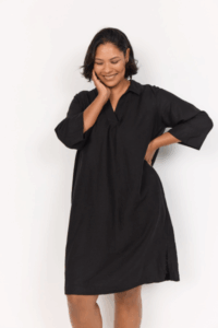 WA-Corinna 6 is een heerlijk jurkje gemaakt van een lichtgewicht mix van linnen en viscose. De jurk heeft een kraag, een v-hals, 7/8 mouwen, schuine steekzakken en splitten aan beide zijkanten. Style deze mooie jurk met hakken voor een moeiteloze formele look. 55% Linen, 45% Viscose
