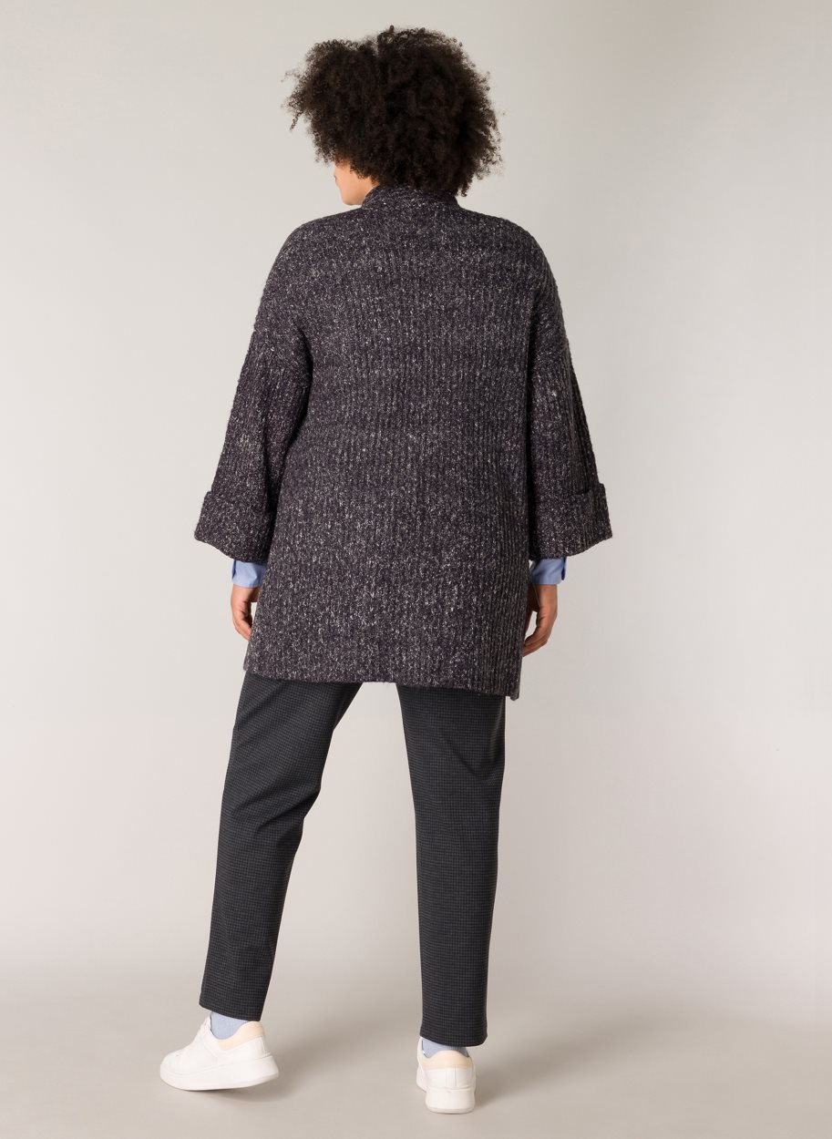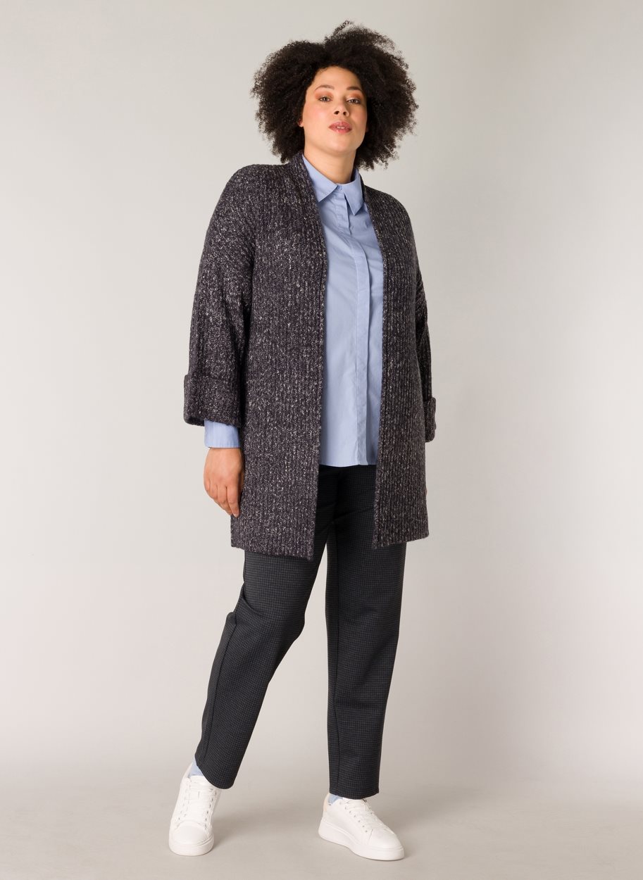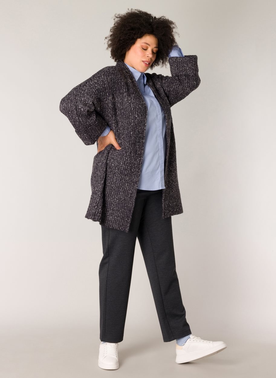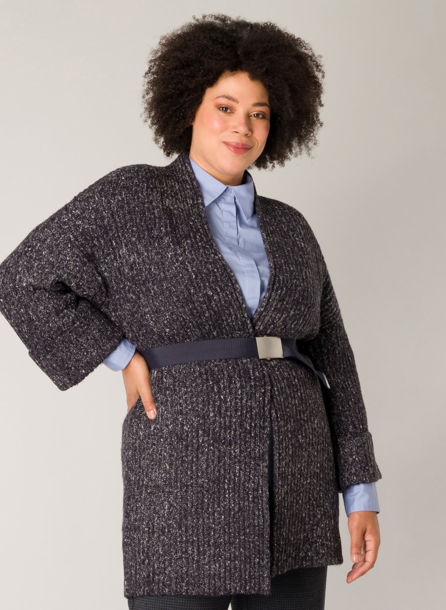 Heerlijk zacht en ruim vest in een grof gebreide steek. Openvallend model met een bijpassend ceintuur. Samenstelling: 56% PAN, 24% Polyester, 19% Cotton, 1% Elastane